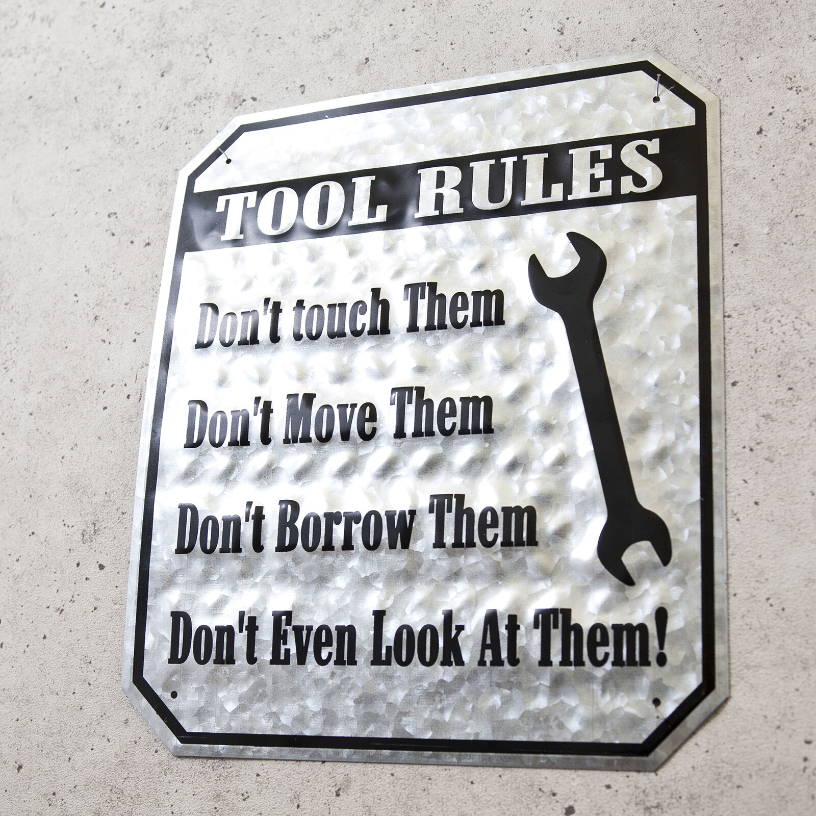 アメリカンクラシック エンボスティンプレート [TOOL RULES] ティンプレート看板 ガレージ雑貨