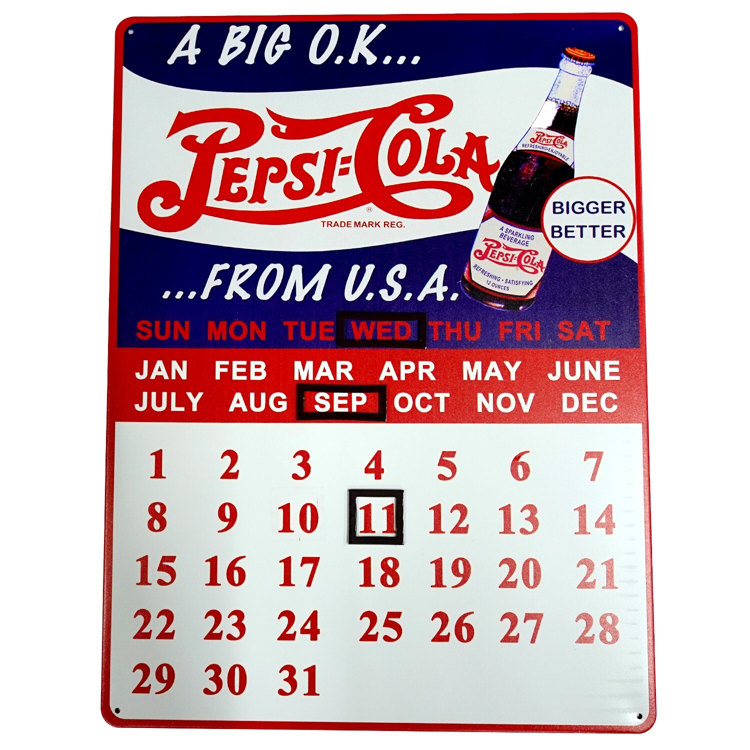 メタルサイン カレンダー 万年カレンダー アメリカン雑貨 ガレージ ブリキ ティン 看板 FROM USA