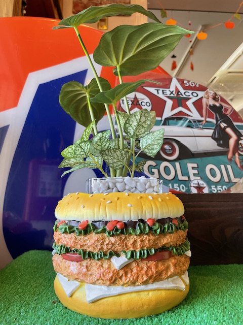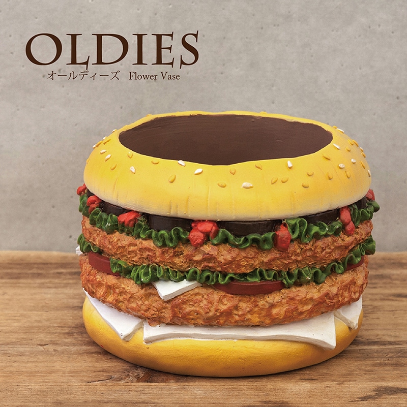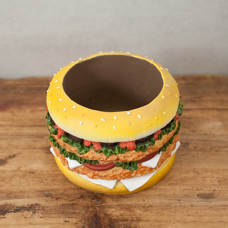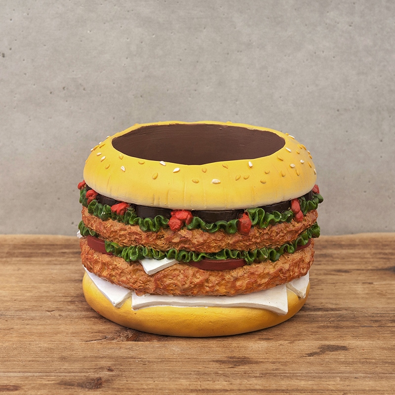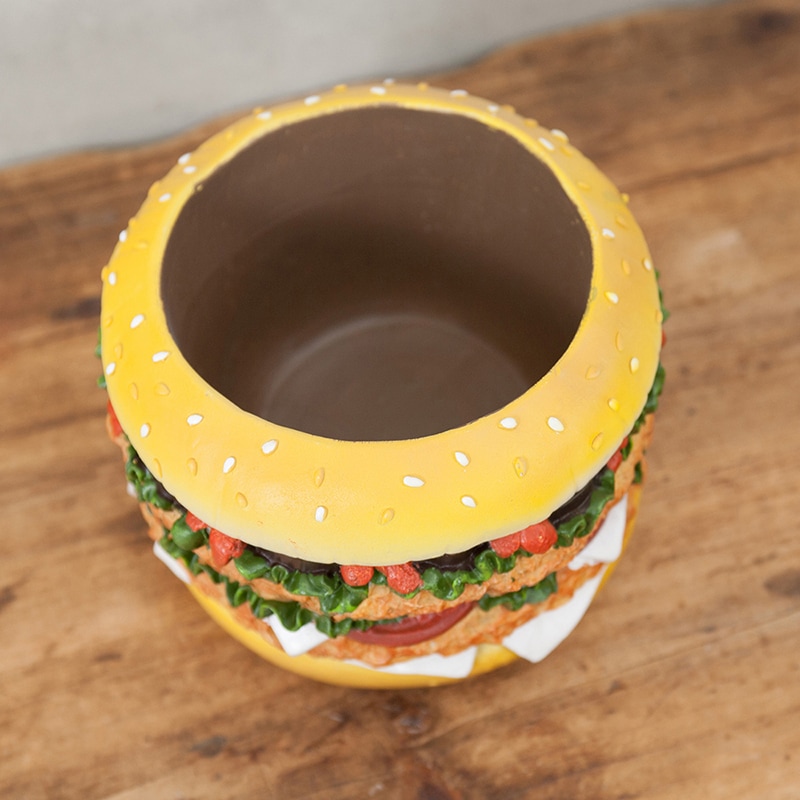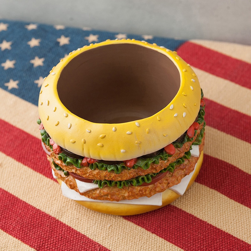 レトロなハンバーガーをモチーフにした、ユニークなフラワーポットです。
