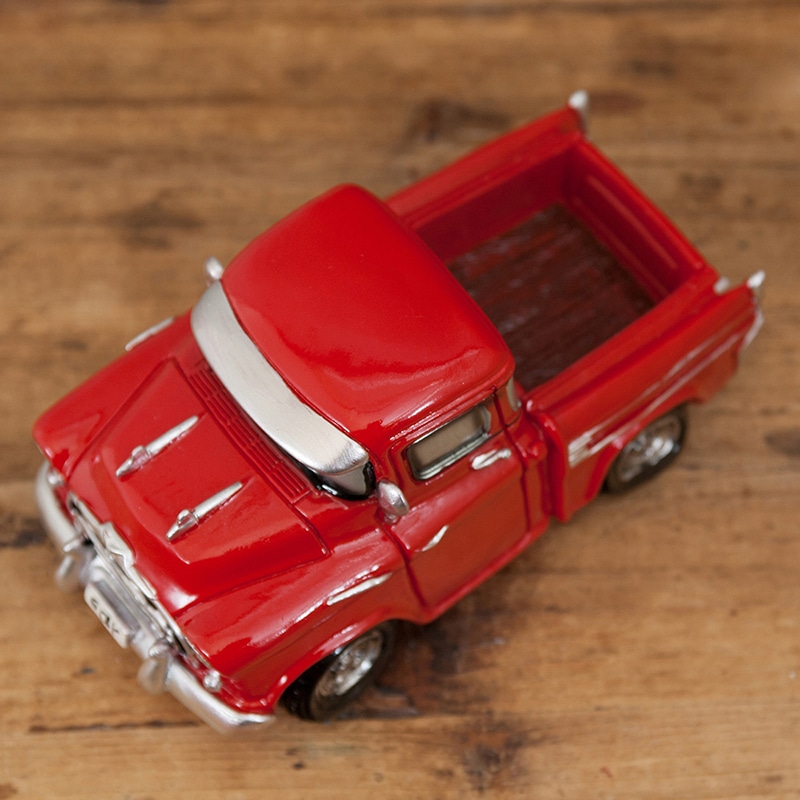 細部までこだわって作り込まれた、レッドカラーのトラック型貯金箱です。