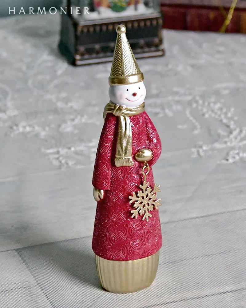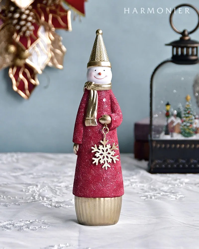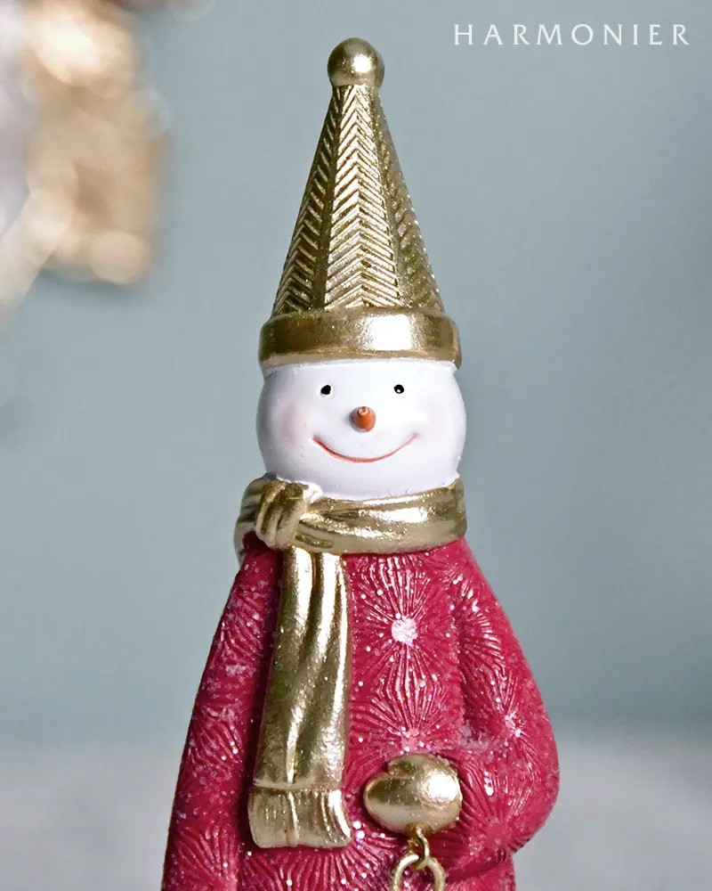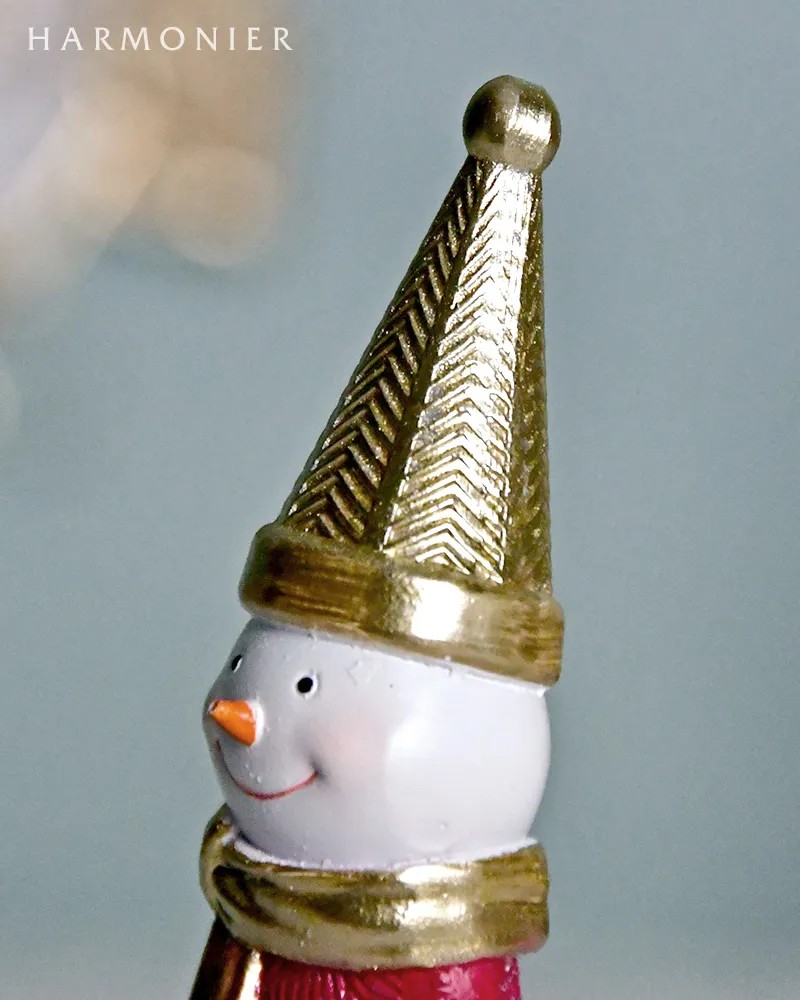 赤色のシャンパンカラーのおしゃれなスノーマンのオブジェ
