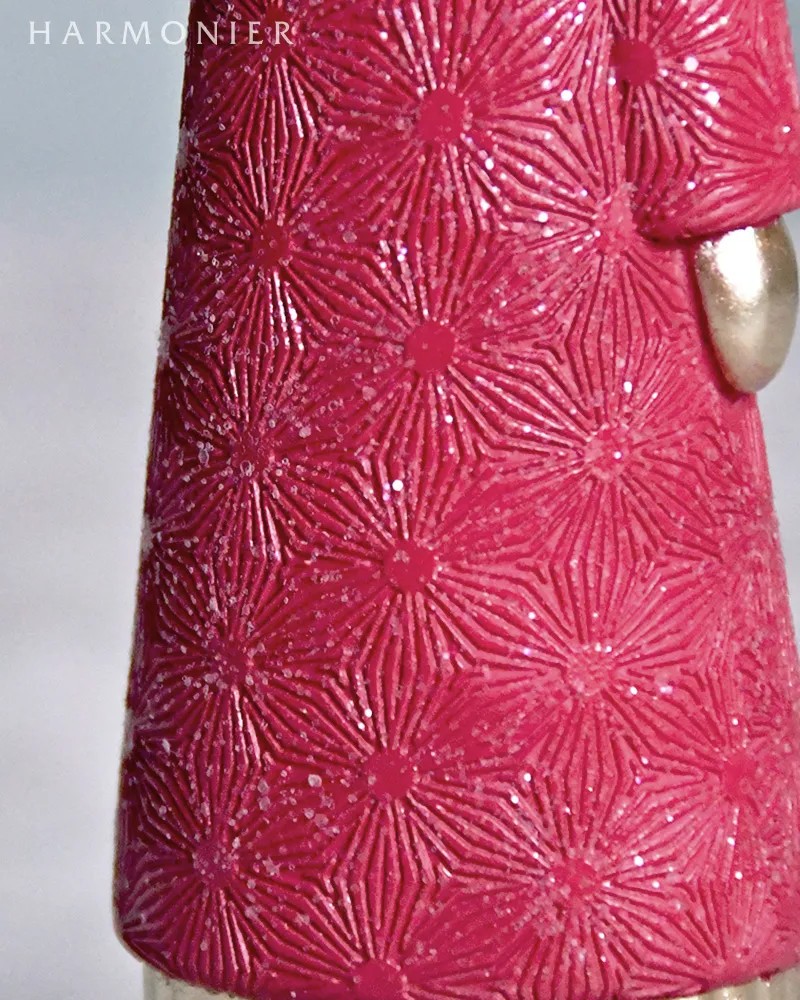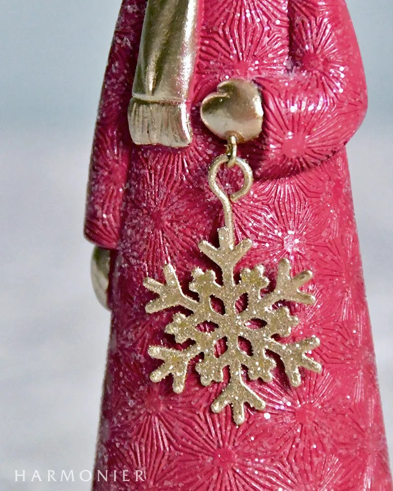 シックな赤色とシャンパンカラーのおしゃれなスノーマンのオブジェ。スリムなフォルムに上品なカラーリングが洗練された印象で、繊細なアラベスク模様が刻印された高級感のあるデザイン。高さ23cmほどで棚上やテーブルに飾りやすいサイズ感です。ナチュラルなインテリアにもおすすめです。同シリーズのツリーやサンタクロースなどのオブジェと並べると素敵です。