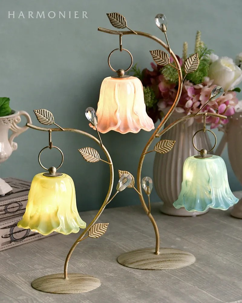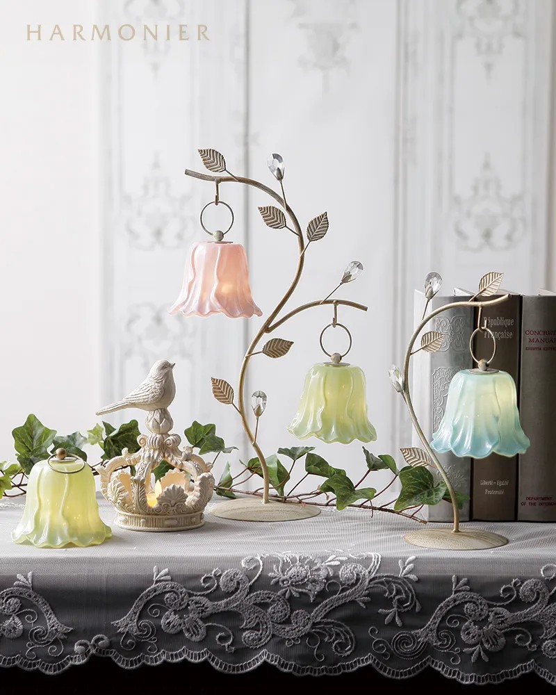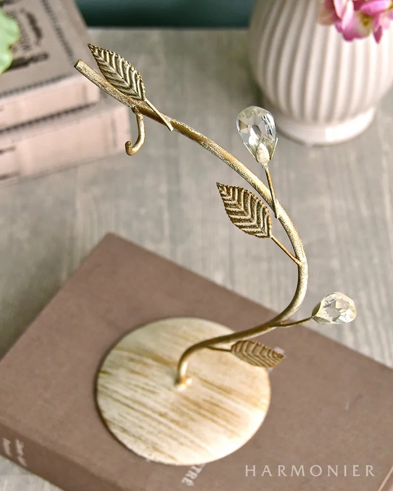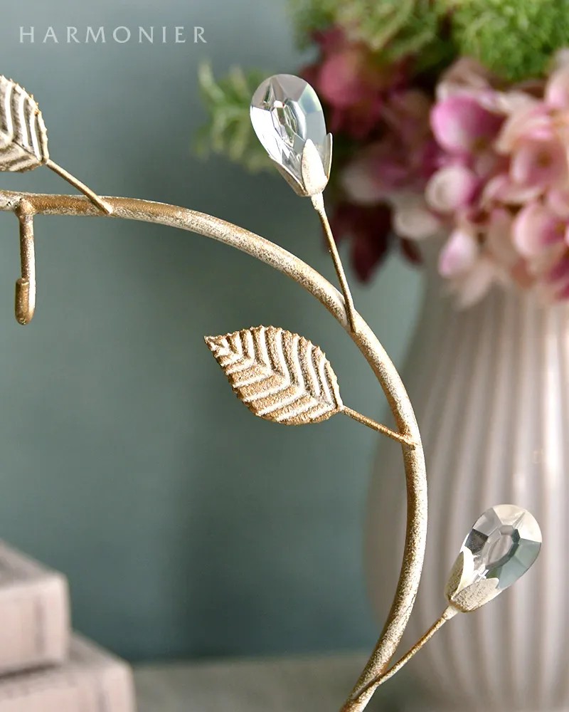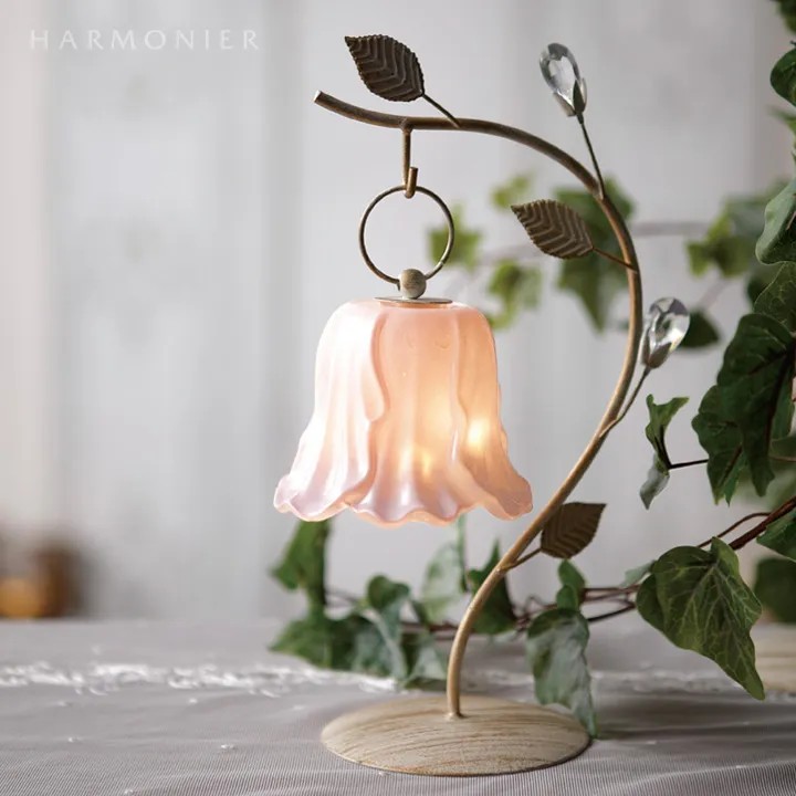 シャビーシックに仕上げたおしゃれなリーフ付きのランプスタンド。優美な曲線にクリアストーンのベリーやリーフを装飾したおしゃれなデザイン。チューリップ型のLEDランプと合わせれば、玄関やリビングのかわいいアクセントに。その他のランプやオーナメントなどを飾っても素敵です。
