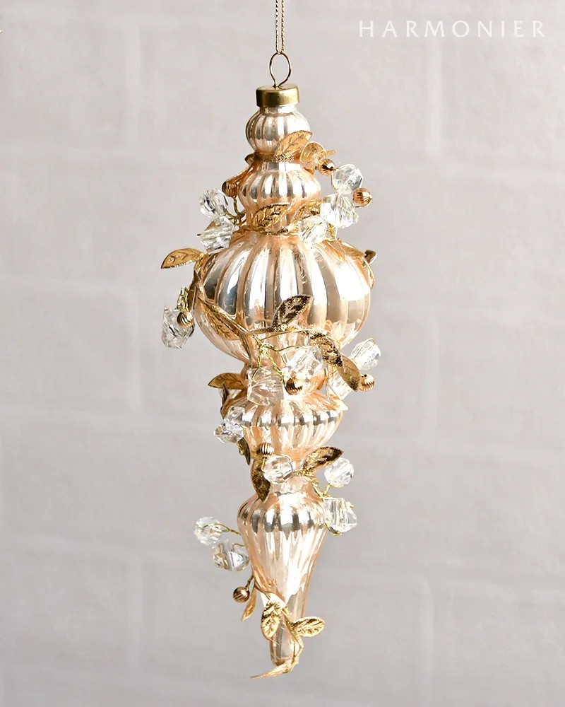 ビーズフィニアルグラスオーナメントシャンパン ロングタイプ ハルモニア クリスマスオーナメント