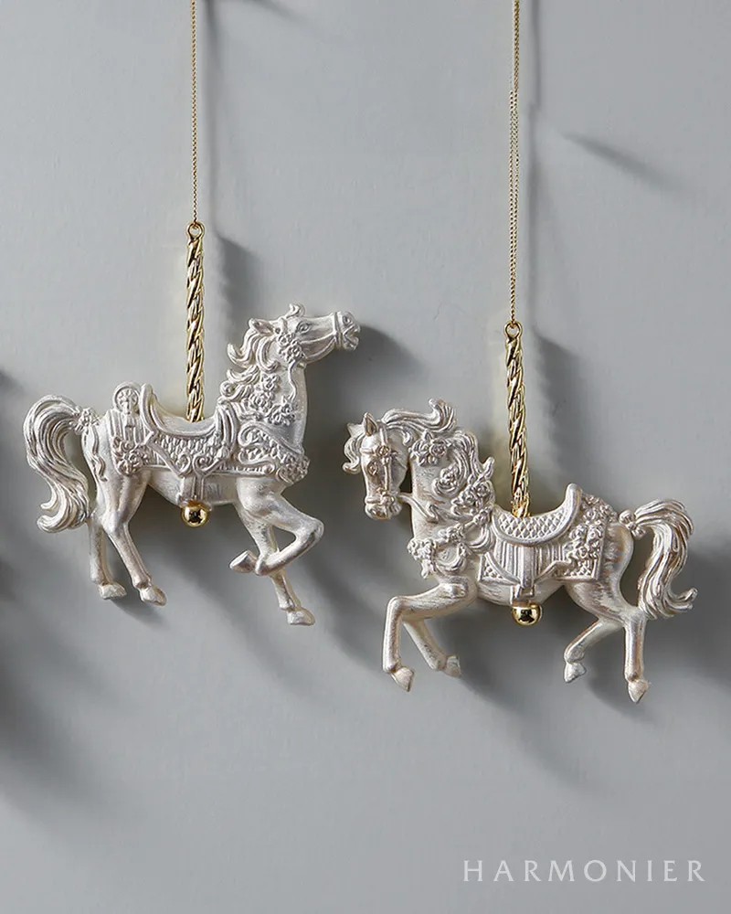 アンティークホワイトカルーセルホースオーナメント B ハルモニア クリスマス