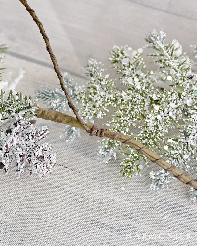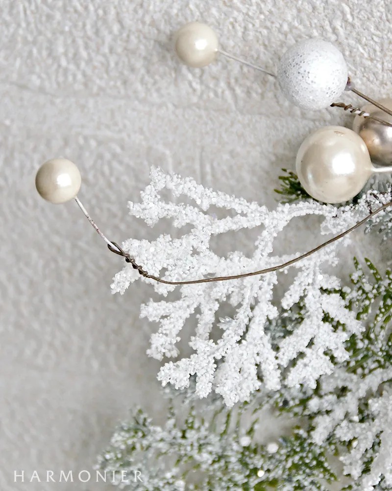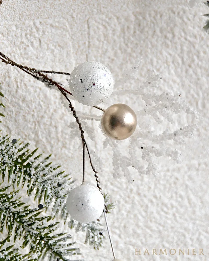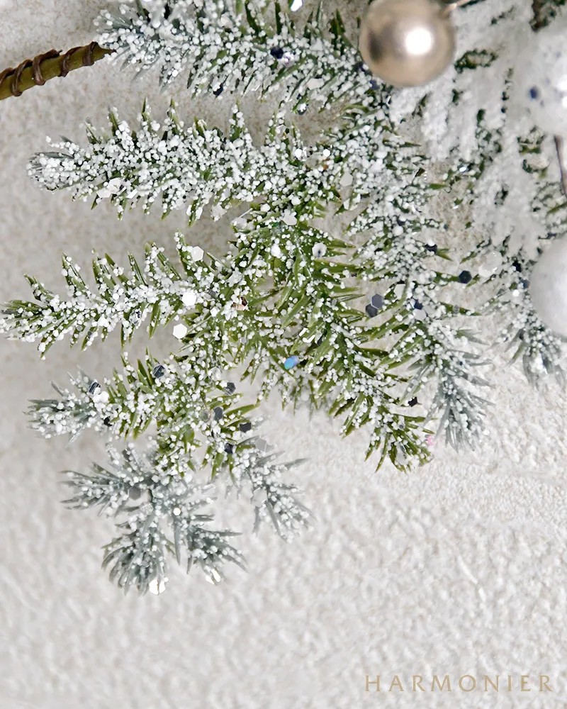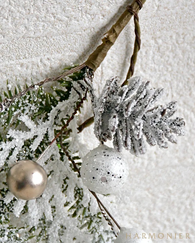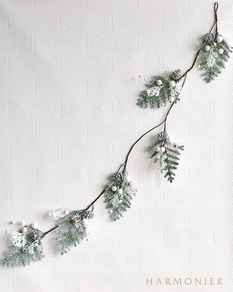 雪化粧をしたリーフのおしゃれなツリーガーランド。ナチュラルテイストのツリーを華やかにボリュームアップしてくれます。華奢な枝なので、スリムタイプのツリーやコンパクトな卓上ツリーにも飾りやすいガーランドです。