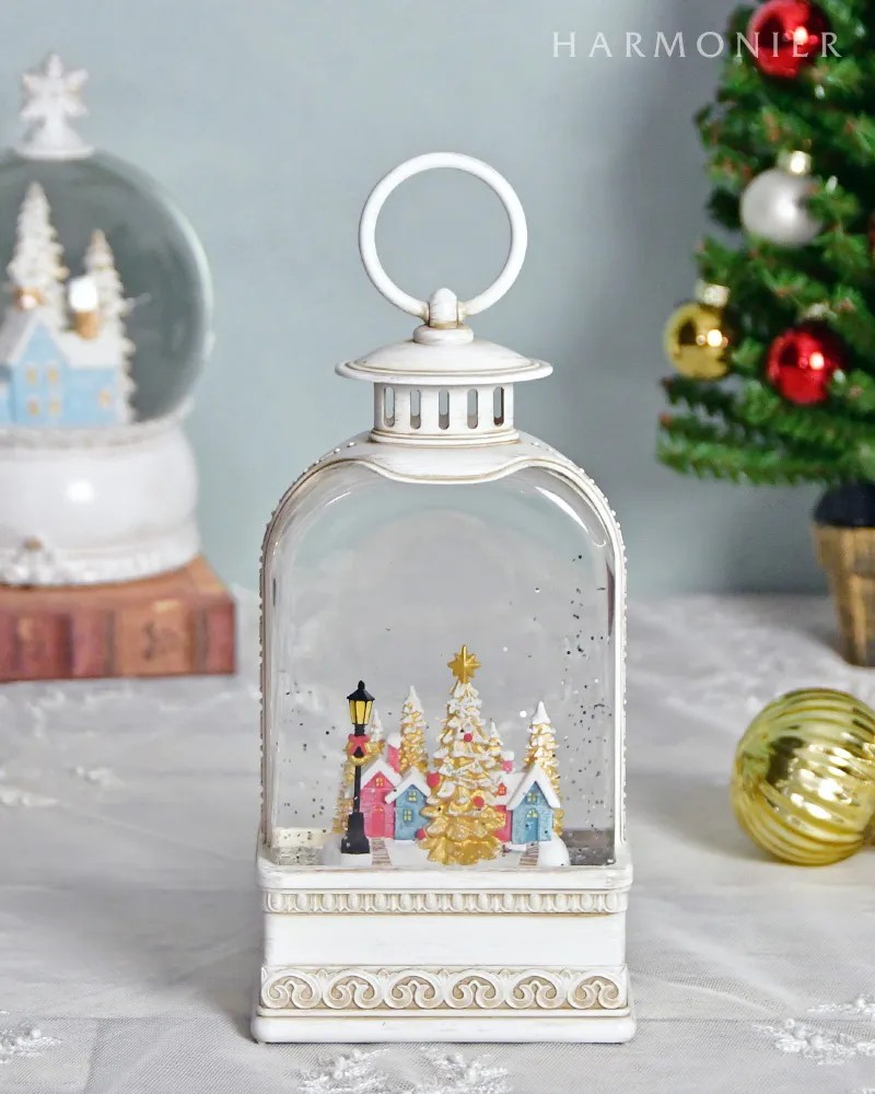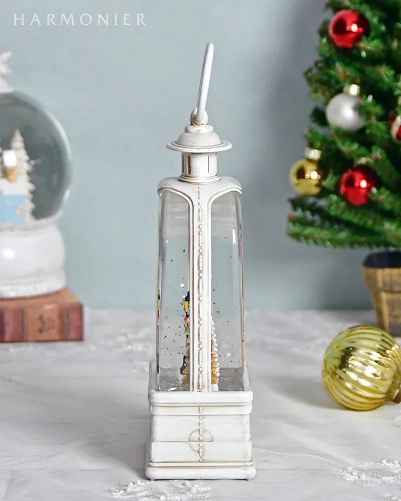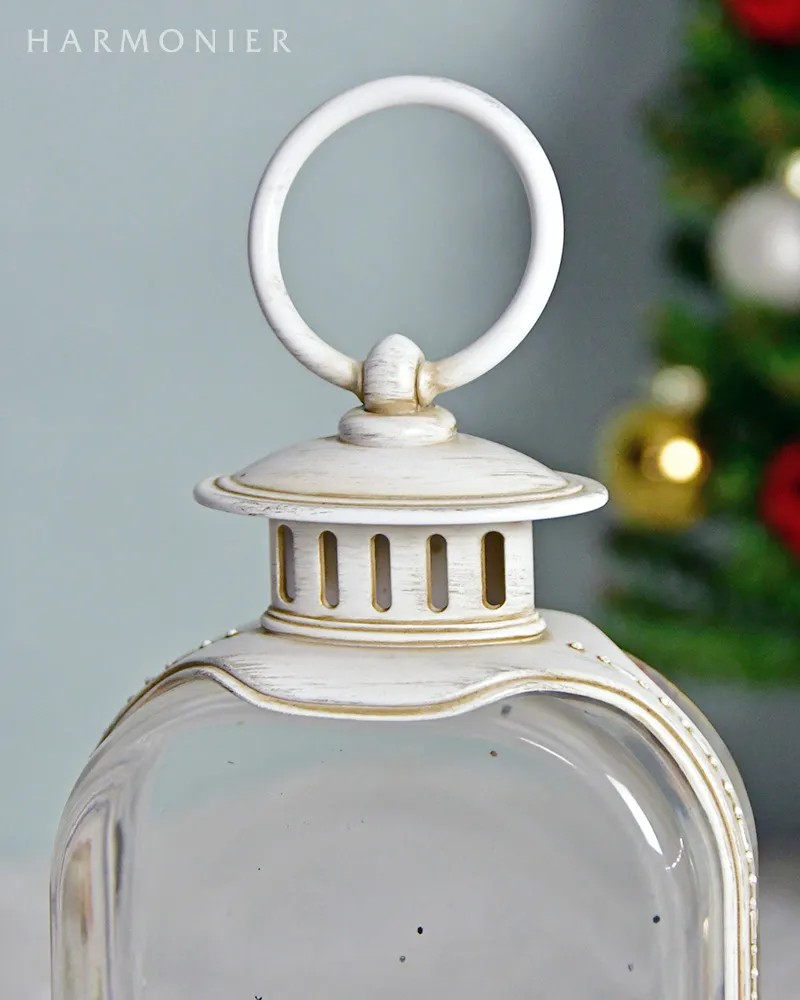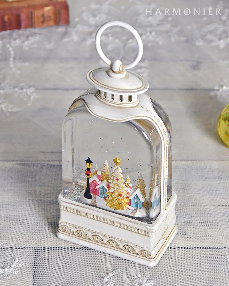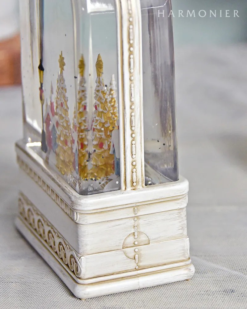 クラシカルな白いランタンのオルゴールオブジェ