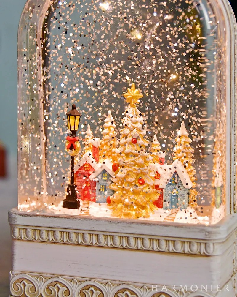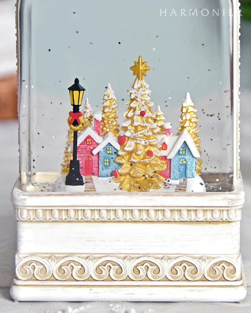 パステルカラーの街並みが入ったクラシカルな白いランタンのオルゴールオブジェ。スイッチを入れると中のラメが舞い、8曲のクリスマスソングがメドレーで流れ幻想的な雰囲気です。棚上に飾りやすいスリムなフォルムで、これ一つでもクリスマス気分を存分に楽しめ、空間を華やかにしてくれます。場所に合わせて電池かUSB接続で使うことができるので、クリスマスプレゼントにもおすすめです。