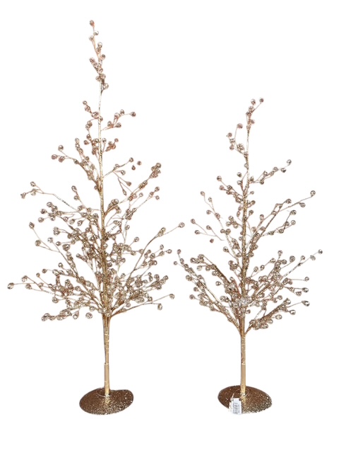 きらめくゴールドワイヤーと透明感のあるクリスタル風ビーズが美しく輝く、ワイヤーツリースタンド(高さ48cm)。