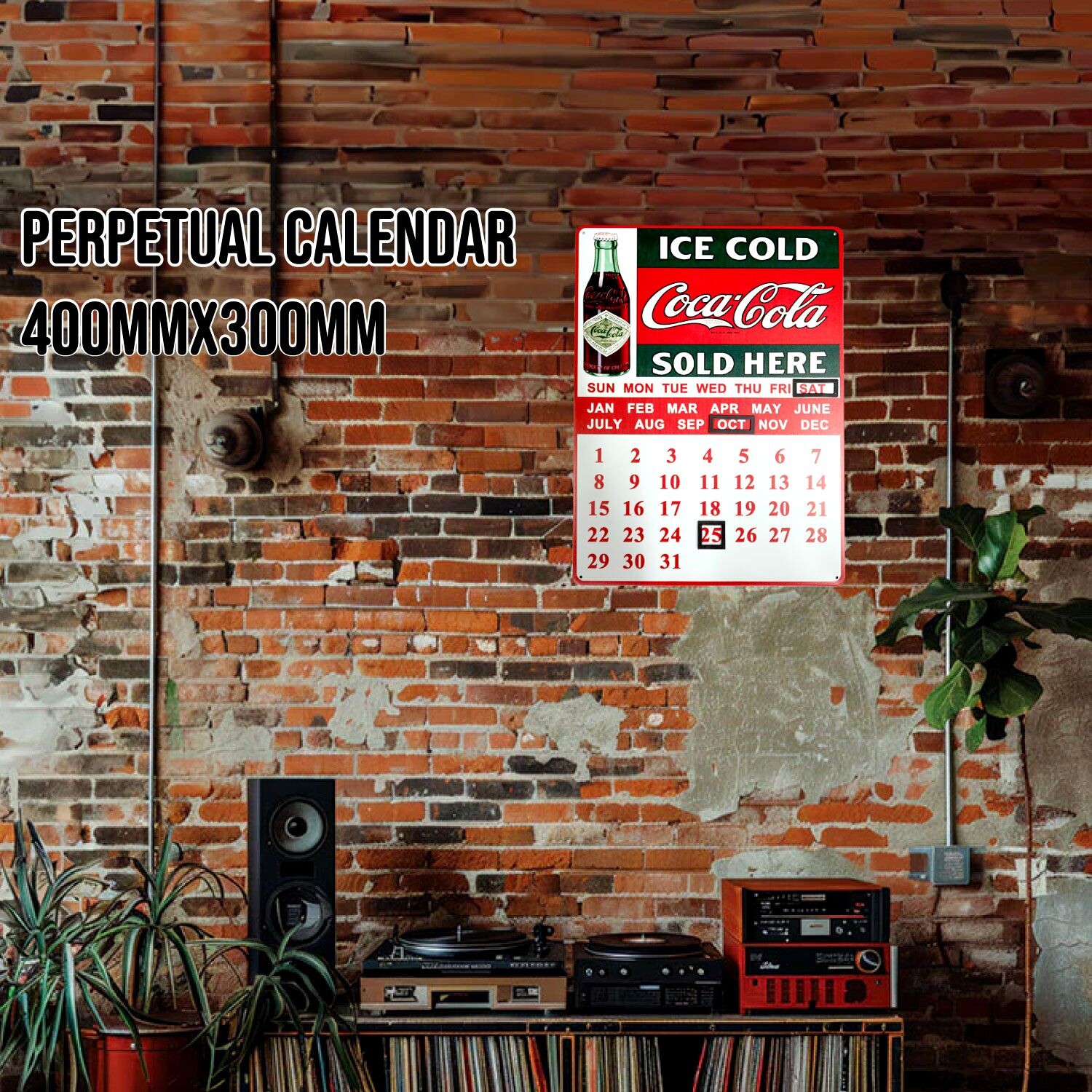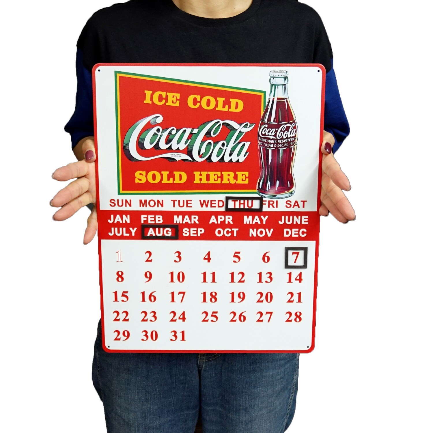 メタルサイン カレンダー 万年カレンダー アメリカン雑貨 ガレージ ブリキ ティン 看板 コーラ ICE COLD SOLD HERE