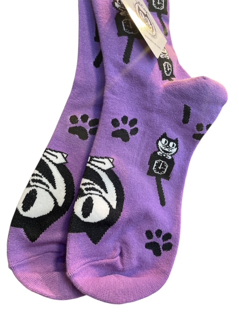 こちらは限定入荷のKit-Cat Klock柄と肉球柄がかわいいソックスです。自分用にギフト用にいかがですか。