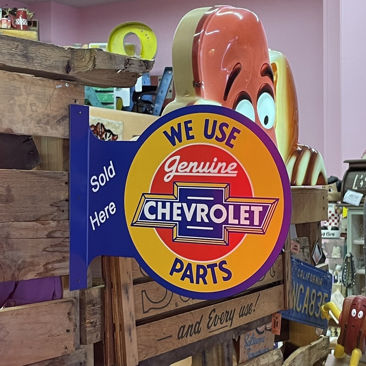 フランジ メタルサイン WE USE Genuine CHEVOLET PARTS 看板プレート